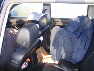 we left new york at 5 or 6 am and slept in the mac d's parking lot. this was my pillow and blanket set ups.