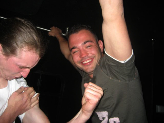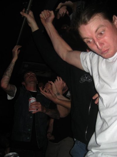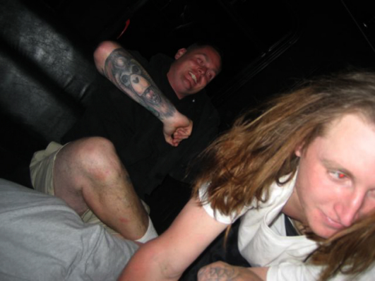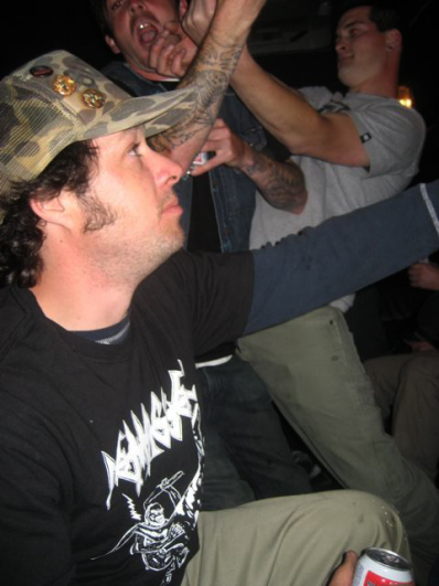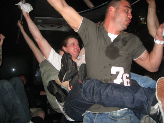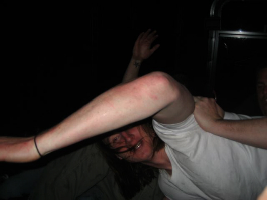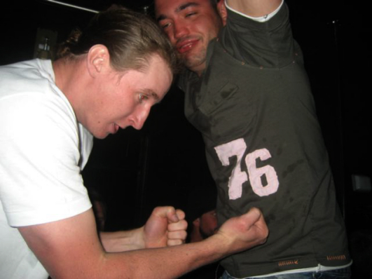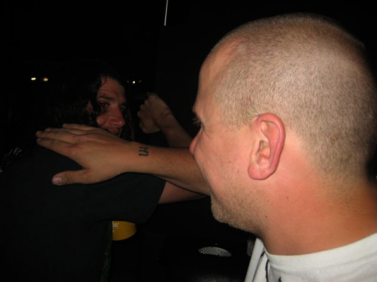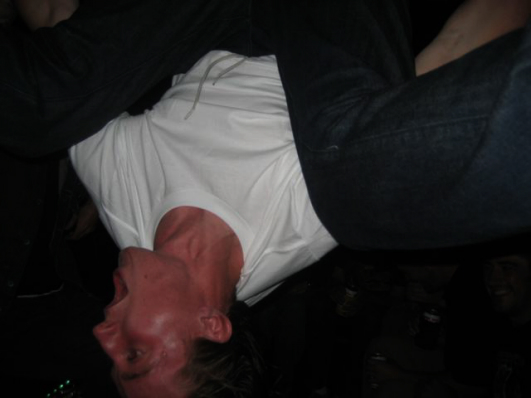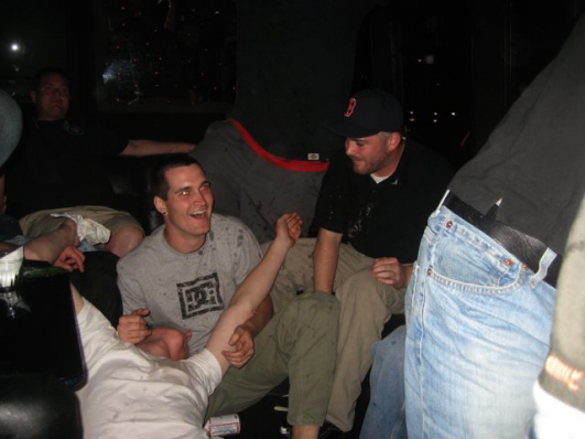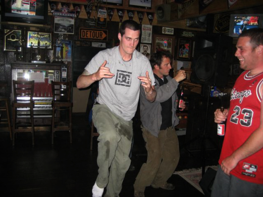 This is the only photo from when we made it back to Jimmys. Chris has no shoes on. I have no idea what's going on here.