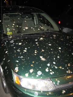 On the walk home i saw a new hybrid car that runs off bird shite. Ye think this guy would find a new parking spot..........