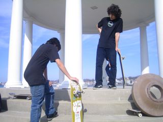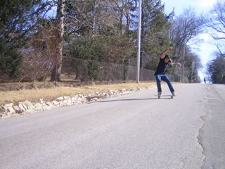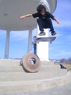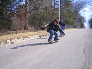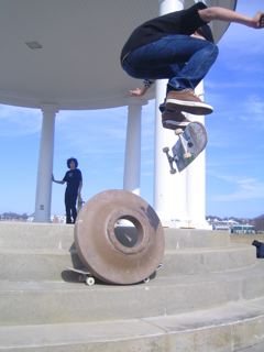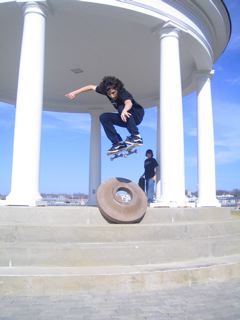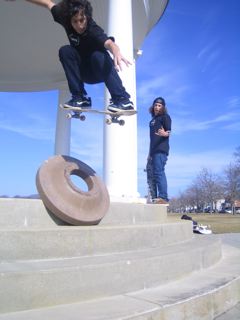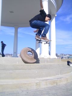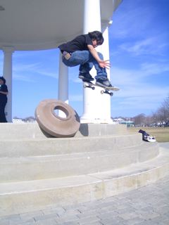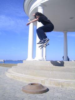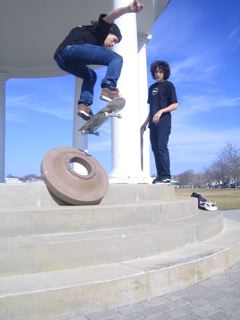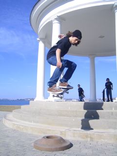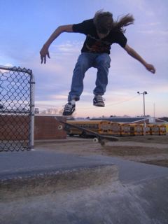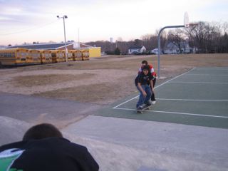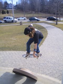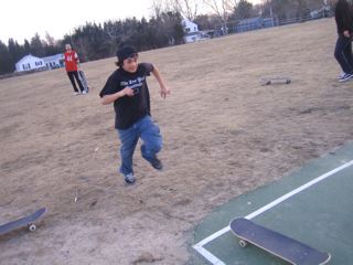 so i helped him out. he nailed an ollie .... and a kickflip without even pushing.