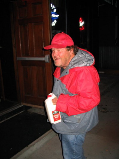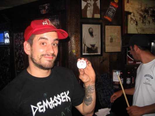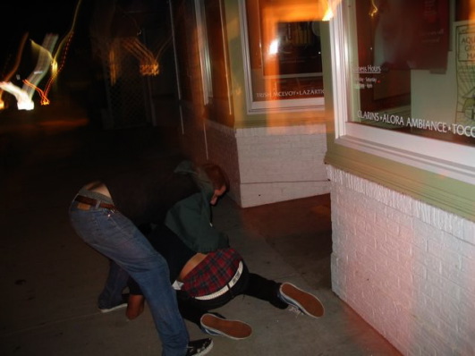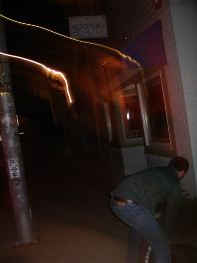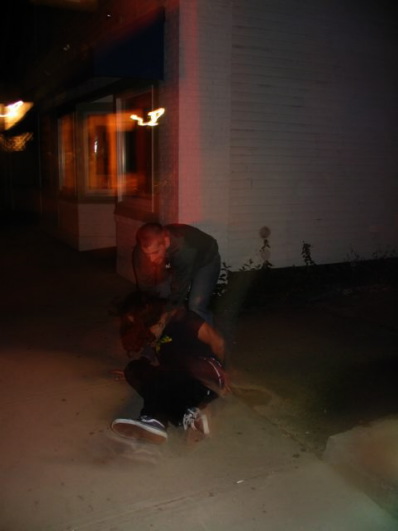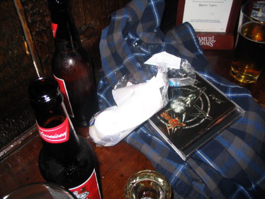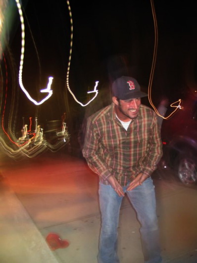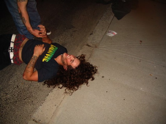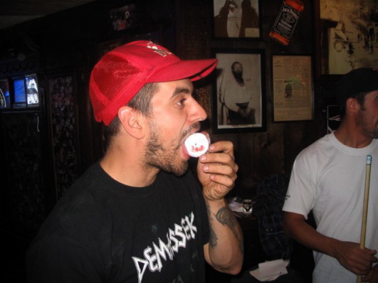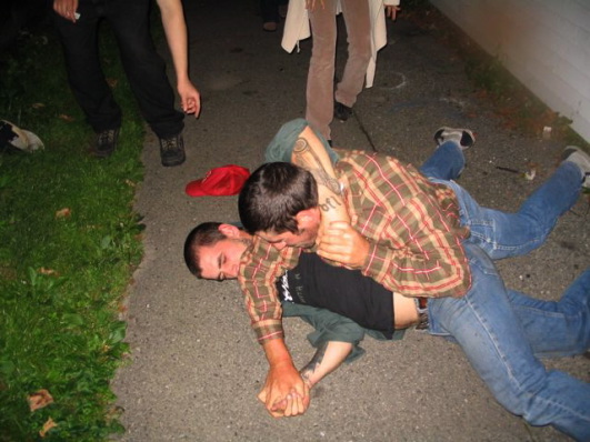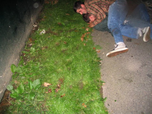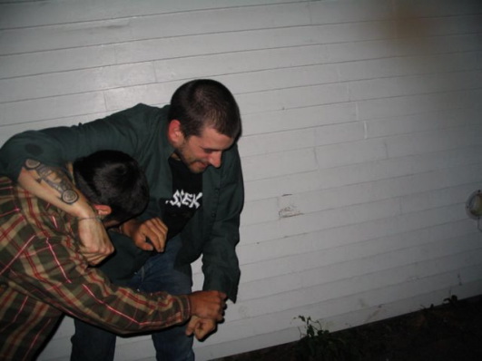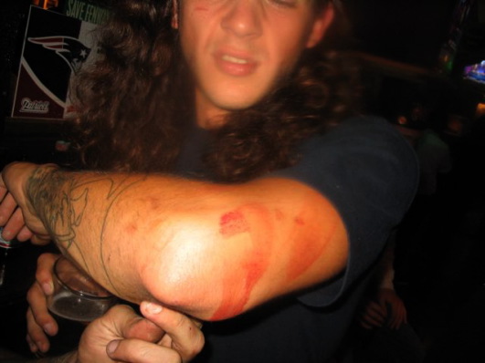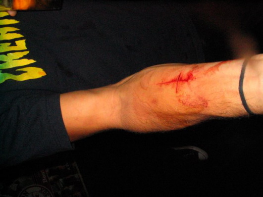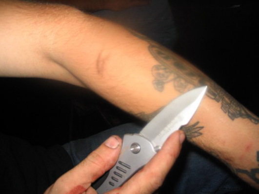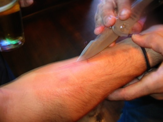 Jon showing how sharpish his knife is. by shaving his arm. Fag.