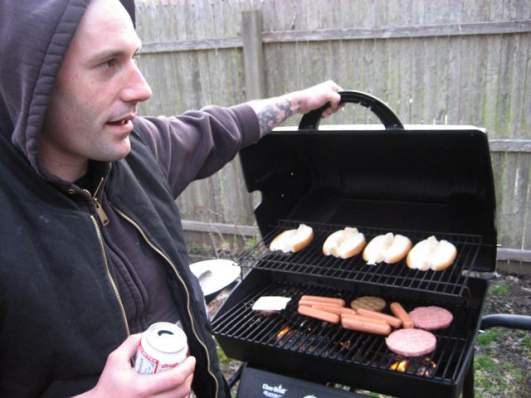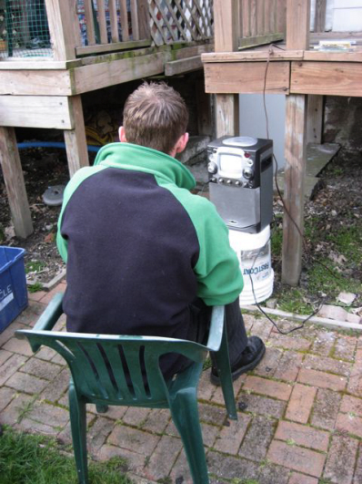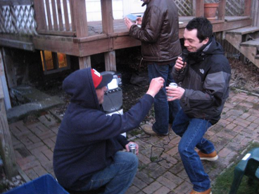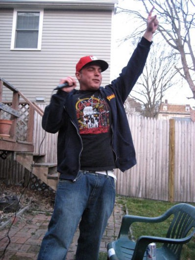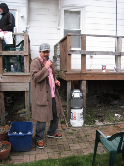 Adrian and Ricky brought their karaoke machine to Stuarts backyard.