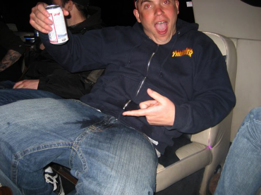 Back when the limo driver still liked us he pulled a u-turn on thew highway so we could piss.