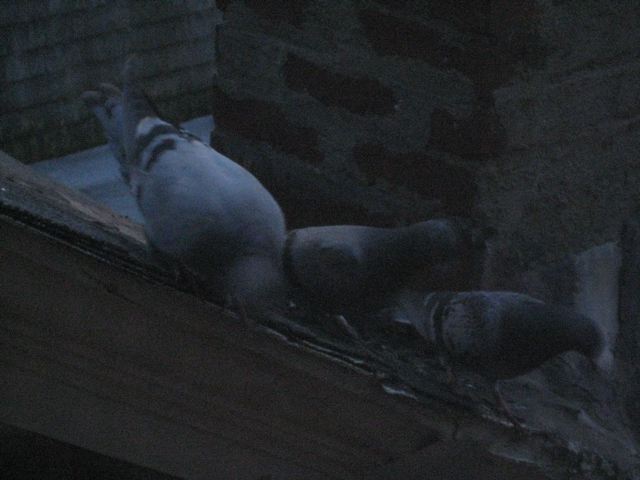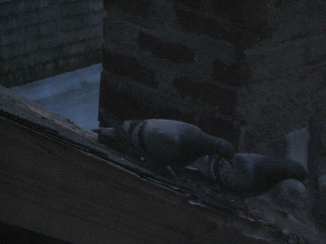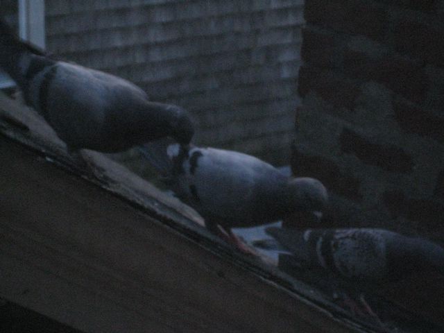 and shit all over my garbage cans. The pigeon noises are kinda nice and