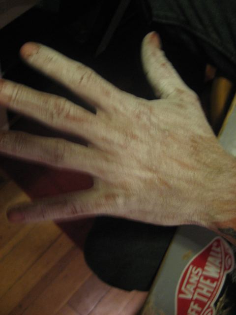 I was upstairs doing something. I came downstairs and caught Ricky colouring his whole hand white.