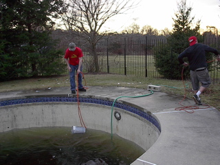 Buckets dropped in, filled and pulled out with extension chords = roughly 40 seconds per bucket = 133 hours 20 minutes to empty without a single break.
