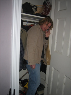In the closet.