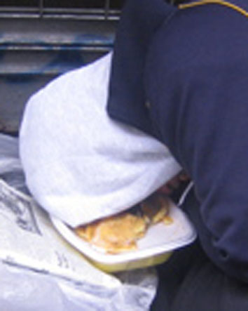 This was the sickest thing i've seen in ages.......this poor geezer passed out with his face right in his burger and fries