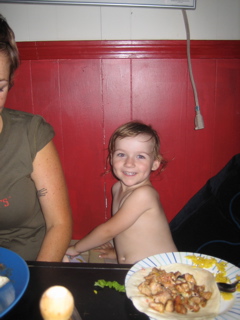 Later we went for dinner at Sapo with Pete and Karen. It was really hot in there, Mia doesn't care.