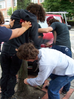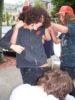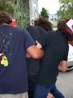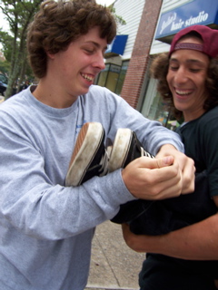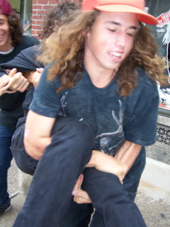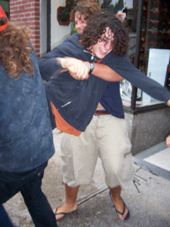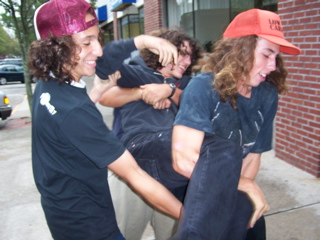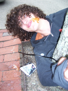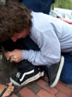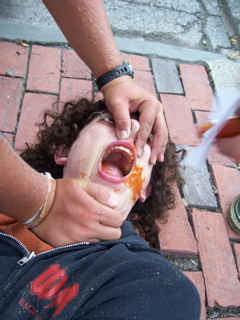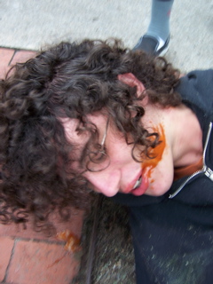 This was the nail in the coffin........Eggy threw a fart bag right next to Sammy...It inflated and everyone ran for cover.....the explosion sent the juices all over Sammys kit........He was trying to blow the bag away from his head.........
