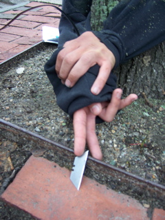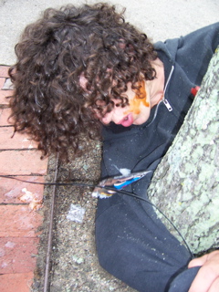 The Torturings continued........we gave him a razor blade to free himself but it was just out of reach.....poor wee guy