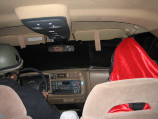 Changus as Animal Mother driving us to the halloween party at Jimmys Saloon.