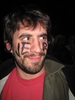 Loring! His girlfriend must have let him out for the night but she didn't let him dress up.