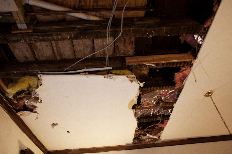 Curt took a shit in the bathroom above the kitchen and the ceiling collapsed. No joke.