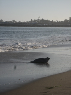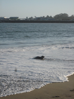 This sealion started creeping up the beach....he was so epic...he looked like a dog.........