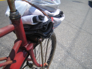 this my calcutta bike set up. i bought the bunji cord from ash mart this morning. look how rad the lobster pot looks.