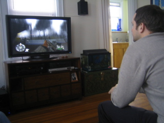 After the shop me and eggman went to schmittys hoose to see his new tele.