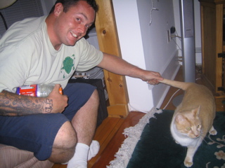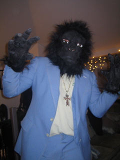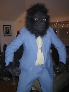 setting eamon's ape suit on fire while he's still in it.