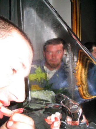 Ricky caught a Jumbo Shrimp, a Beef Wellington and some spinach h'orderve in his mouth, all in a row.