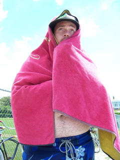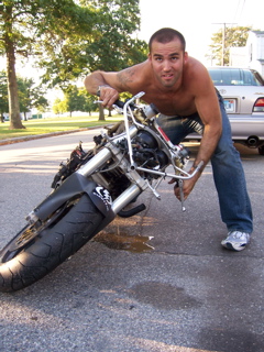 Then i ran into this total pyscho.......Danity Fair had wrecked his bike in his last race....here hes tipping out the oil or some other bollocks