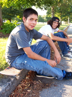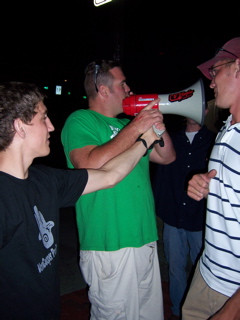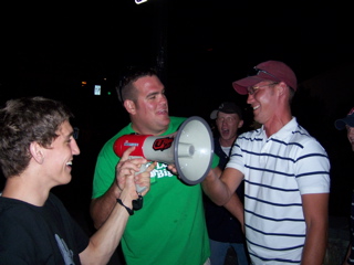 We found these kids who stole a megaphone......i need one ..there so fun.......These meatheads grabbed it and the geezer in the green yelled to his bud....