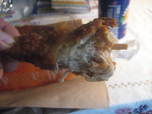 Vegan Buffalo wings complete with wooden bones.