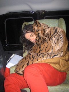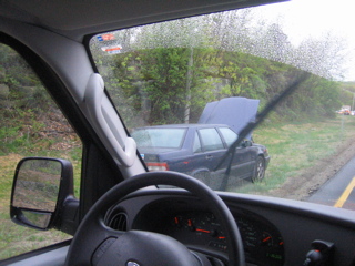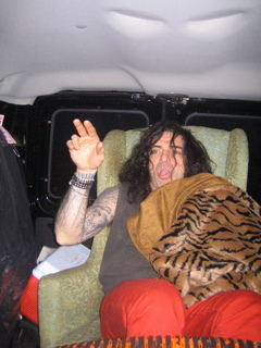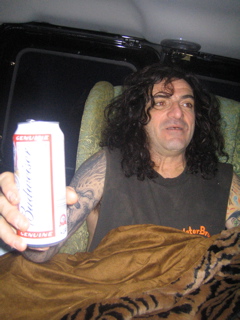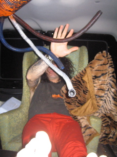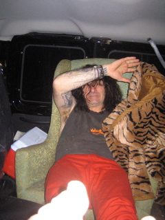 Its 5am....raining so heavy.....everyone stinks.....were going 90mph......and Big Tim dosnt have his hands on the wheel in this photo..........christ