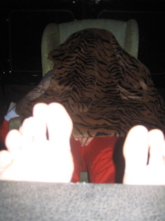 Then it was all quiet in the back......but his dirty ass feet were right behind my head.....it stunk the whole way home