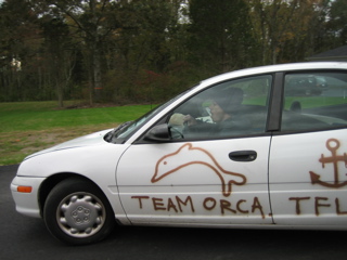Ricky driving the Team Orca mobile. Ricky doesnt have a license.