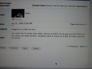 I got this message from Nina on myspace. Davey rules.