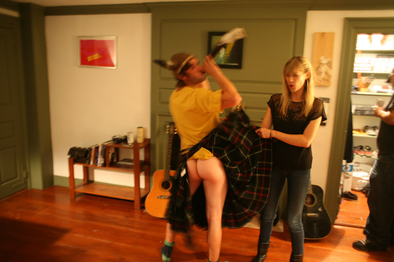 Scottish tradition is to wear nothing under your kilt.