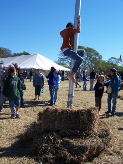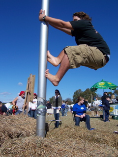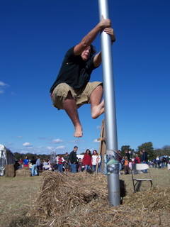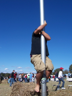 Emo gave an outstanding effort on the greasy pole but didnt make it two feet off the hay.......even with a boost