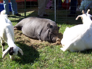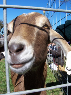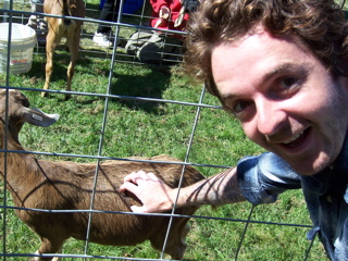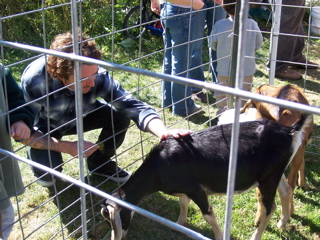 Meika petting the goat that tried to escape