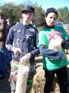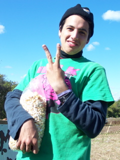 Superfan showed up with popcorn he probably pinched from a farmers dumpster