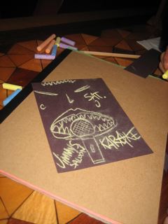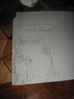 Kim drew a picture of Heavy Metal Billy singing Karaoke.