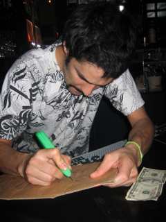 Outside the club. That's Antones hand in the photo. Do you realise what that hand is worth? This hand SHREDS.