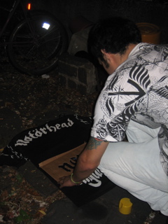 Tino made a stencil for my shirt to change "Motorhead England" to "Motorhead New England"