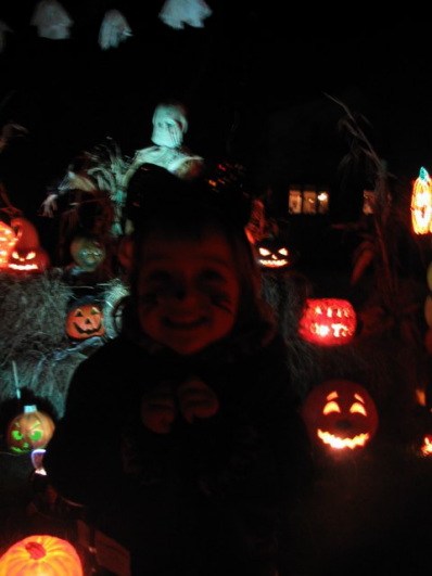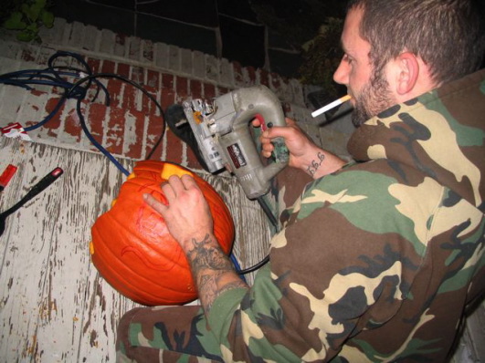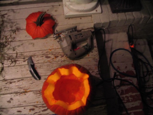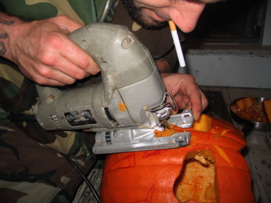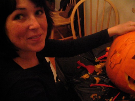 Candace carving pumpkins the traditional way.