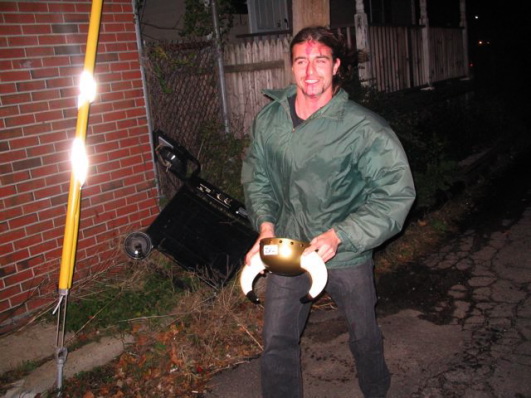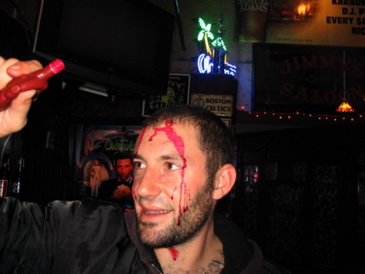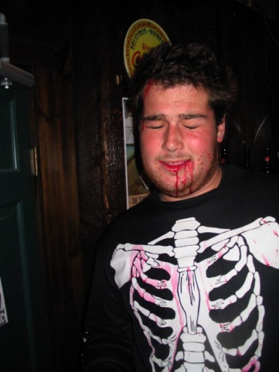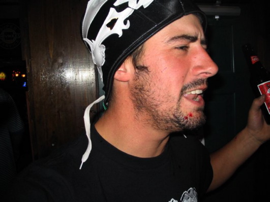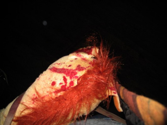Zoro tsabbed Chucky in the ear with his bendy sword.