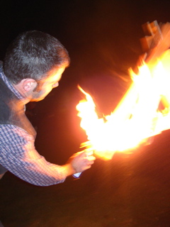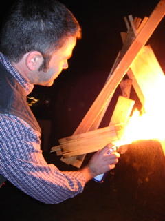 After dinner Ben got to light up his giant 40.......the wood was tough though and we had to use WD40 to get the party started