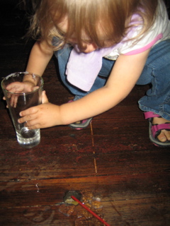 heres mia trying to wake up pat the rat. her yelling didn't work so we thought an old margarita would do the trick.
