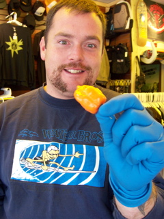 Day 3 of the rain sent the boredom into new levels......Eggy had been growing hot peppers in his yard for ages.......He took a bunch and with his surgical gloves rubbed the burning juices all over the bus shelter and the coin return slot on the pay phone.....everypart of the bum shelter was booby trapped with the hottest peppers......