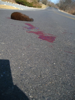 We pulled him off the road so he could rest in the shrubs........For a wee mongoose he had tons of blood