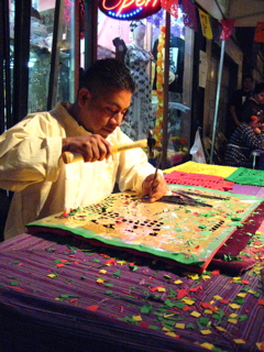 Today is the " Day of the Dead " parade in the Mission.......i watched this wee amigo hammering some rad nik naks together
