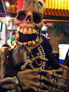 This old bird had real bones hanging off her mask