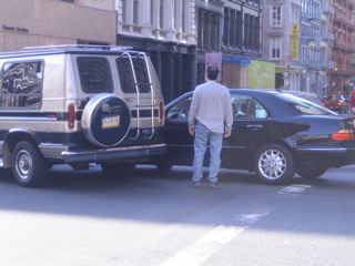 a crash in china town. this geezer was about to pummel the driver in the mercedes. a bunch of good yelling right here.