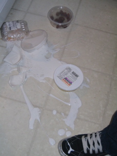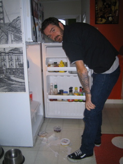 i got up early cos i was so hungry and got laterd by j-dogs fridge and his coconut milk.