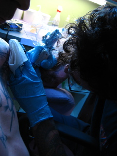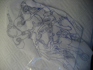 I went to get some tattoo action the other day......i got these medievil knights battling it out.....its from a famous war between the Scots and the English where the Scottish king walloped the English poofter in the neck with his axe..........in the force of the blow, he snapped his axe and also the limeys heid off his shoulders.......thus making for an excellent tattoo