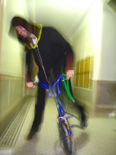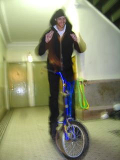 Back in Brooklyn at 5am we found one of those Bmx trike scooters in Manutes apartment lobby