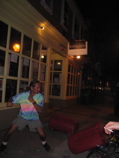 Joe was on fire. He was ninja kicking trash cans on the street. Here he took out 2 at the same time . One of them mangled him in the head though.